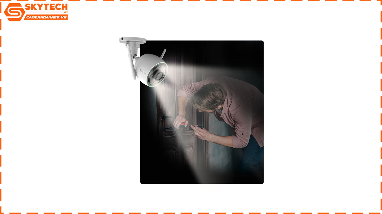 Sau khi phát hiện chuyển động của người, camera C3N có thể tự động phát đèn chớp hoặc bạn có thể cài đặt thủ công để hai đèn rọi sáng chớp nhằm ngăn cản “những kẻ không mời mà tới”. Hơn nữa, theo bản năng, kẻ đó sẽ quay sang nhìn nguồn đèn chớp và sẽ bị ghi hình rõ ràng trên camera.