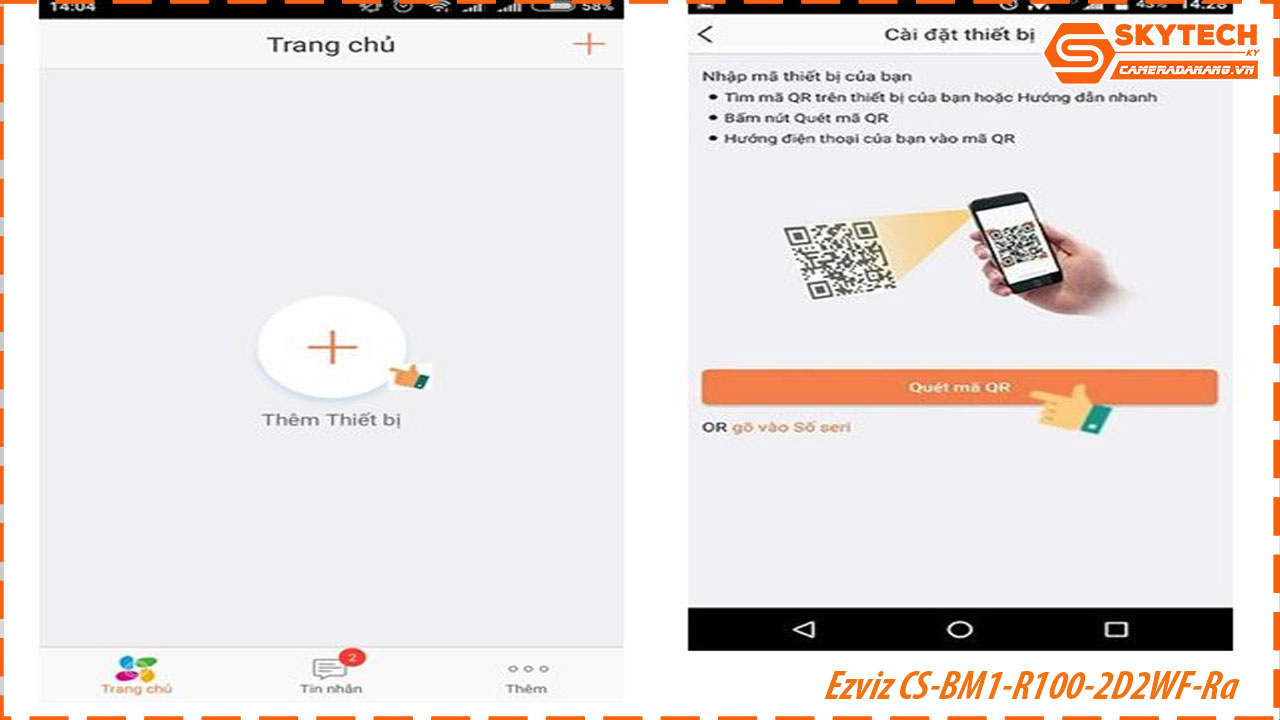 Bước 2: Thêm thiết bị camera vào điện thoại bằng cách quét mã QR hoặc thêm thủ công
