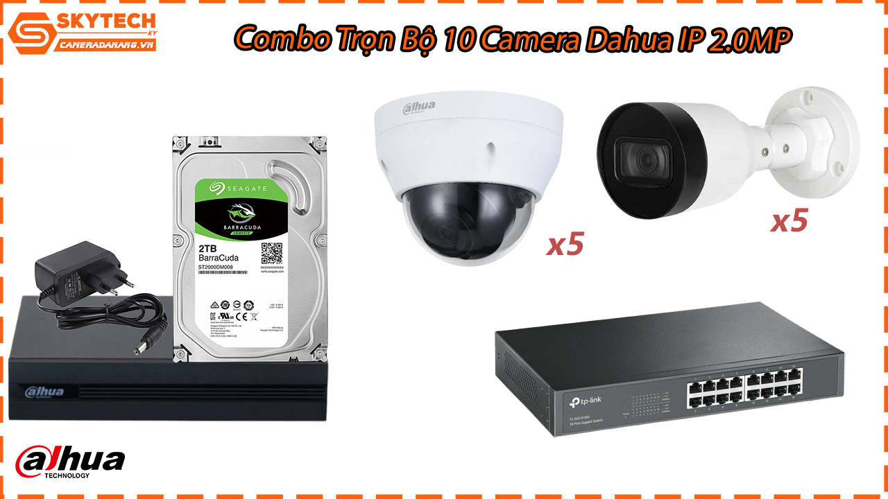 Combo Trọn Bộ 10 Camera Dahua IP 2.0MP gồm những gì?