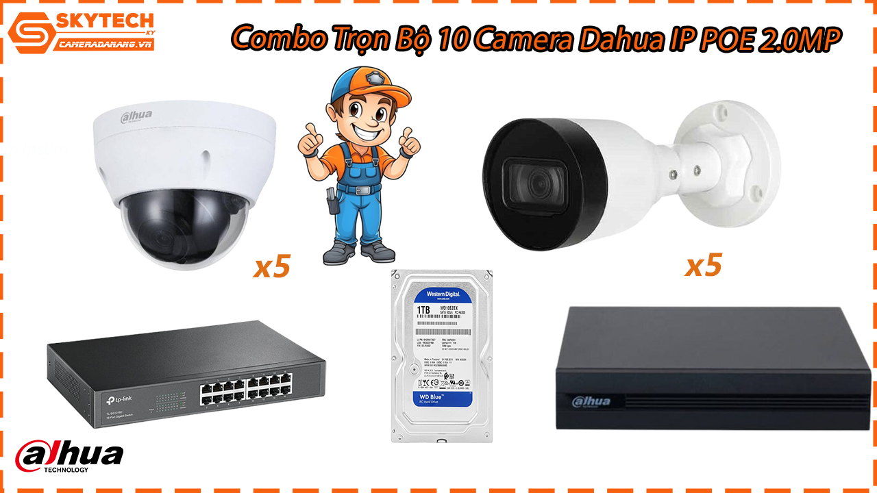 Combo Trọn Bộ 10 Camera Dahua IP POE 2.0MP gồm những gì?