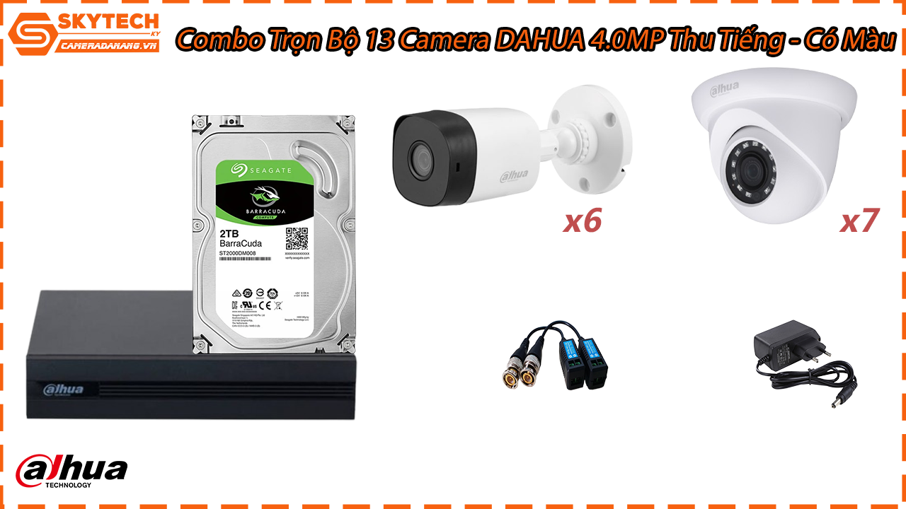 Combo Trọn Bộ 13 Camera Dahua 4.0MP – Thu Tiếng – Có Màu gồm những gì?
