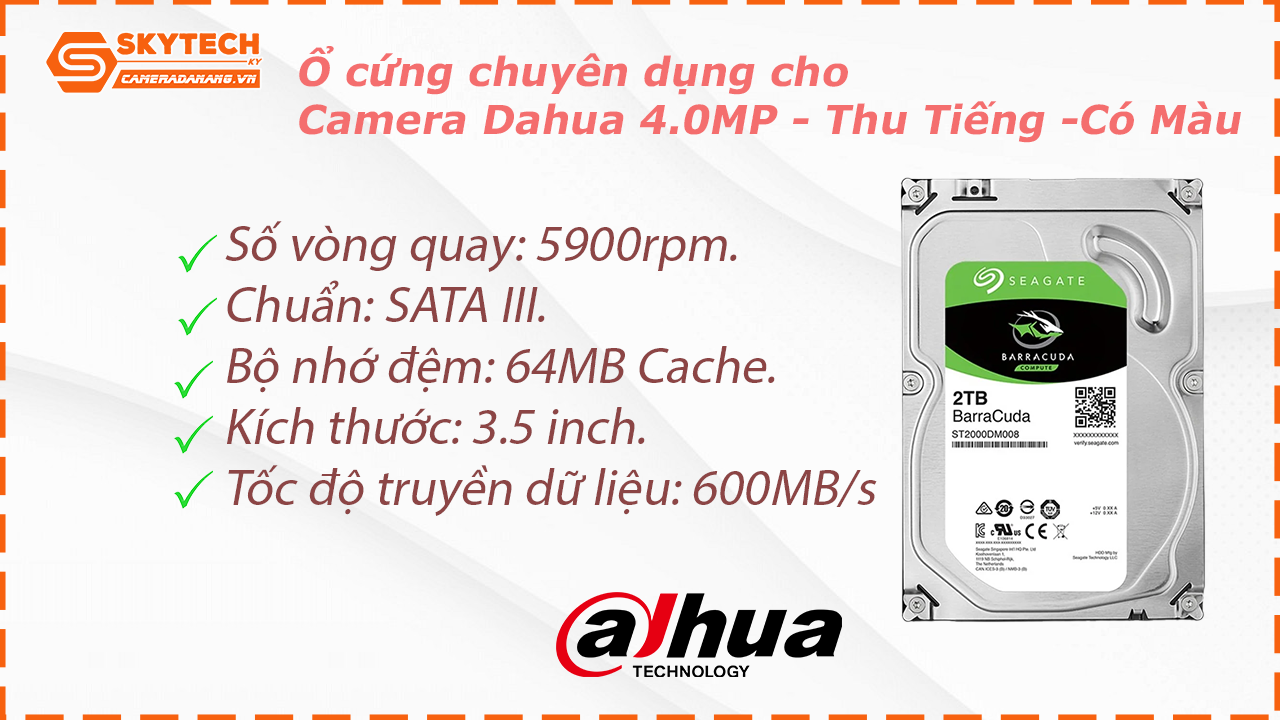 - Ổ cứng lưu trữ chuyên dụng camera: 2TB Số lượng 01