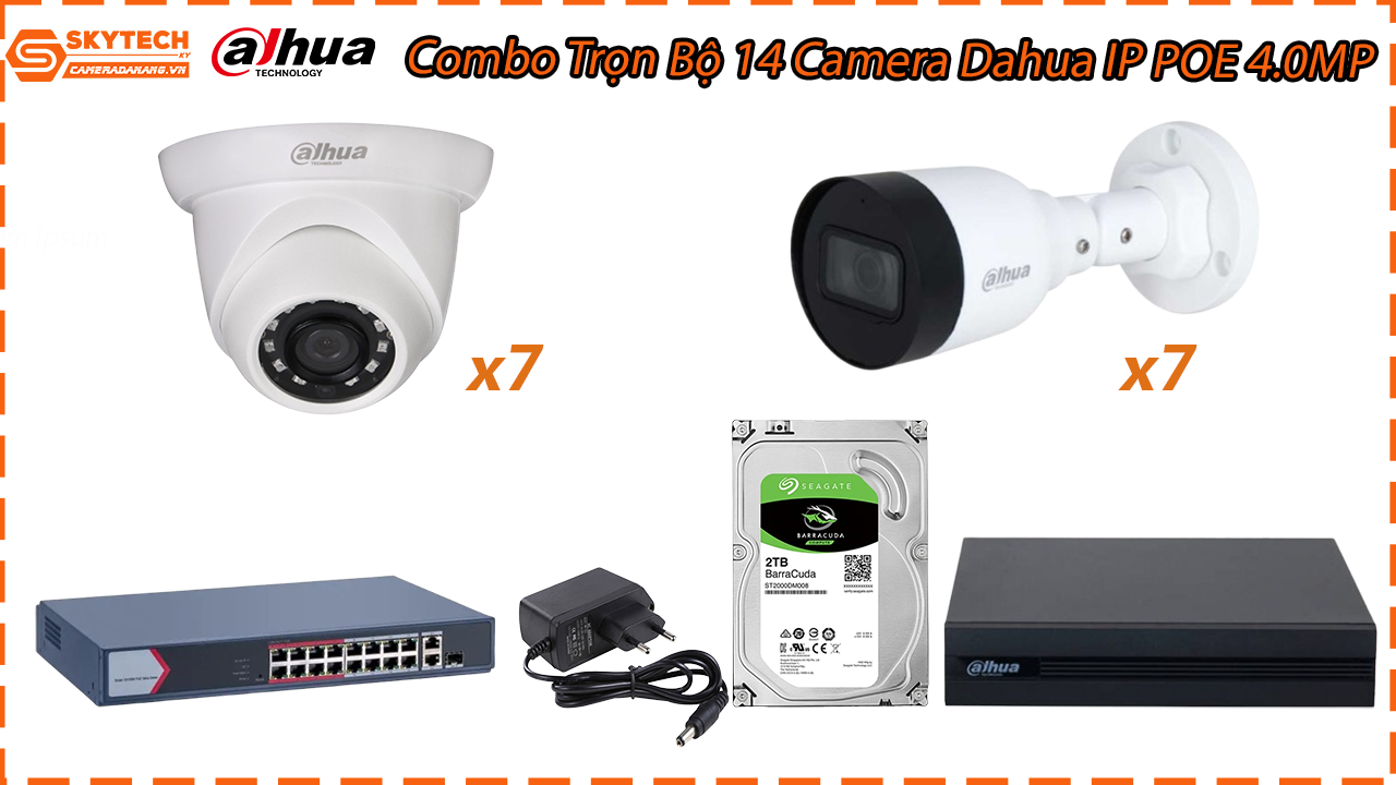 Combo Trọn Bộ 14 Camera Dahua IP POE 4.0MP gồm những gì?
