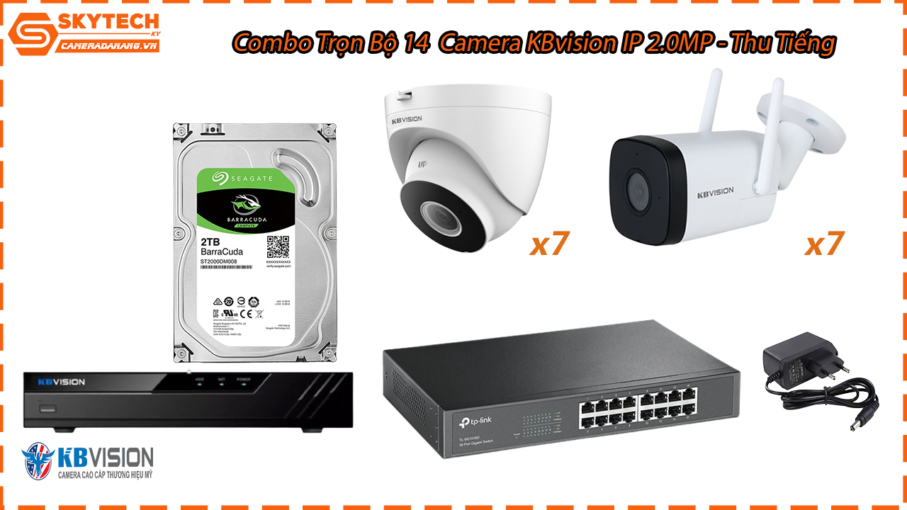 Combo Trọn Bộ 14 Camera KBvision IP 2.0MP – Thu Tiếng bao gồm: