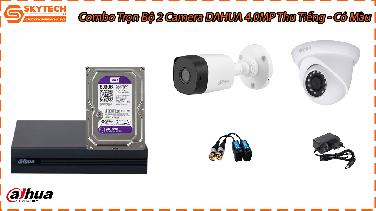 Combo Trọn Bộ 2 Camera Dahua 4.0MP – Thu Tiếng – Có Màu gồm những gì?