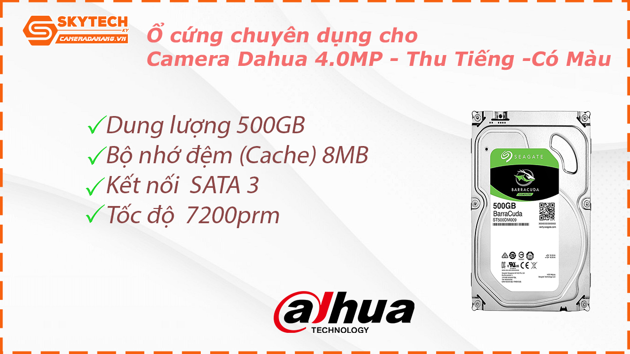 - Ổ cứng lưu trữ chuyên dụng camera: 500G Số lượng 01