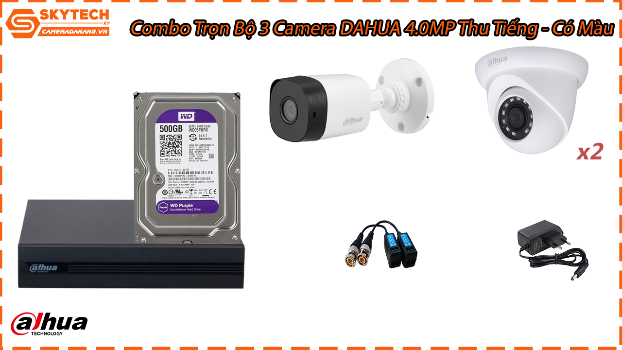 Combo Trọn Bộ 3 Camera Dahua 4.0MP – Thu Tiếng – Có Màu gồm những gì?