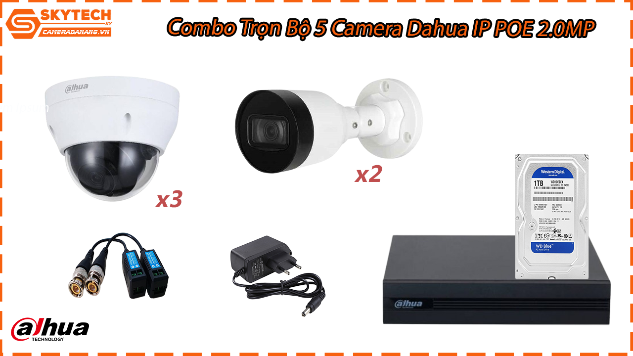 Combo Trọn Bộ 5 Camera Dahua IP 2.0MP gồm những gì?