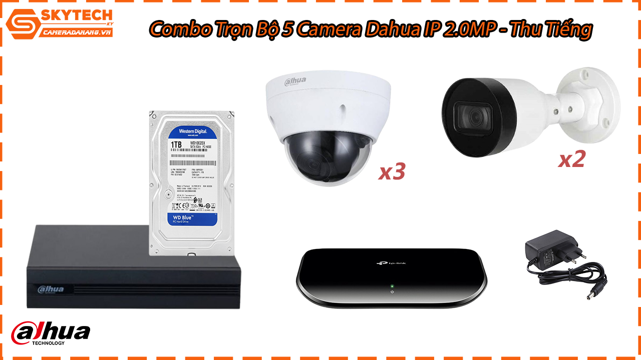 Dịch vụ cung cấp Combo Trọn Bộ 5 Camera Dahua IP 2.0MP – Thu Tiếng tại Sky CCTV