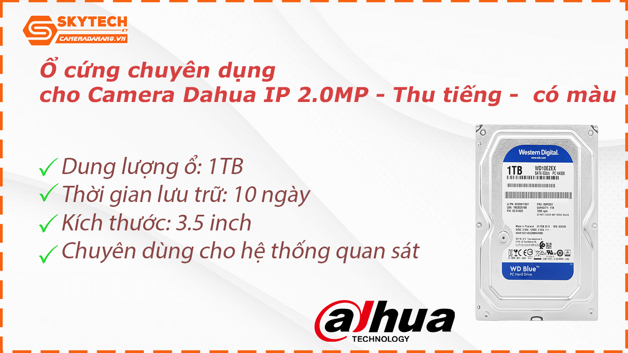 - Ổ cứng lưu trữ chuyên dụng camera: 1TB Số lượng 01
