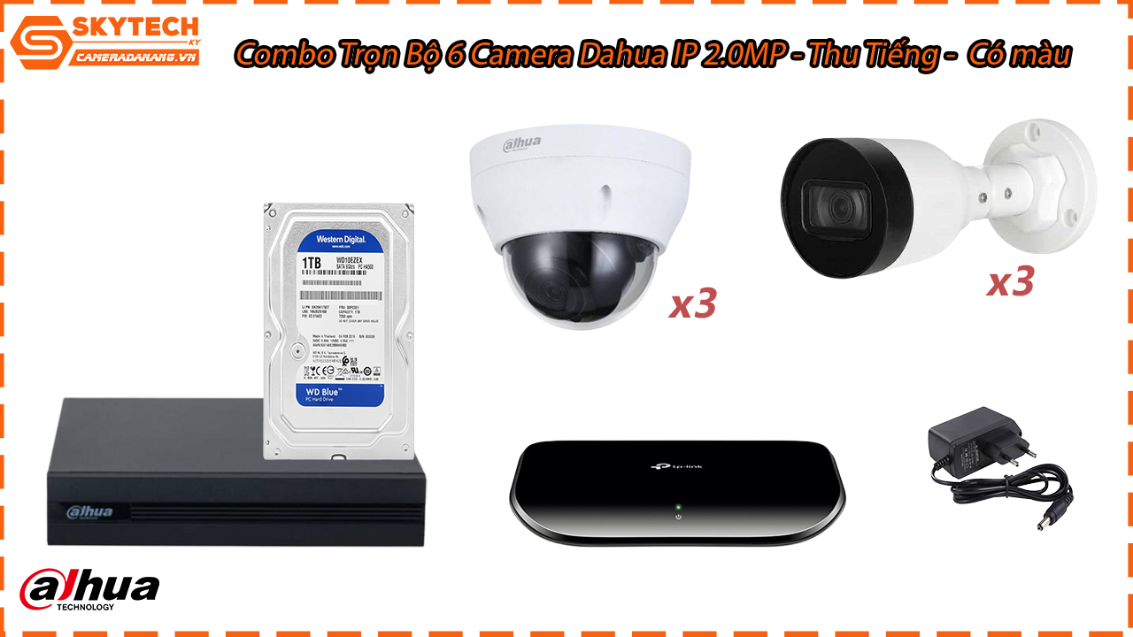Combo Trọn Bộ 6 Camera Dahua IP 2.0MP – Thu Tiếng- Có Màu gồm những gì?
