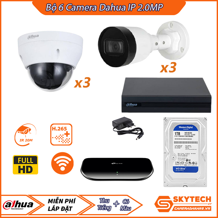 Combo Trọn Bộ 6 Camera Dahua IP 2.0MP – Thu Tiếng- Có Màu gồm những gì?