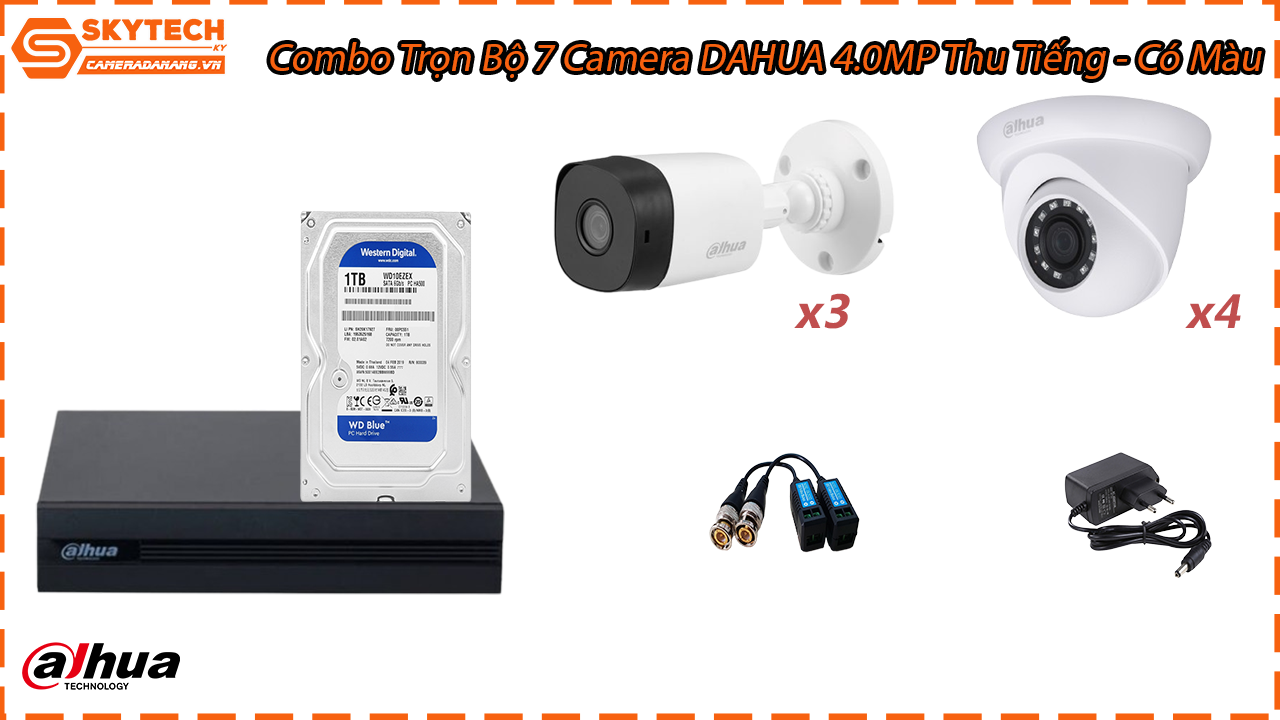 Combo Trọn Bộ 7 Camera Dahua 4.0MP – Thu Tiếng – Có Màu gồm những gì?