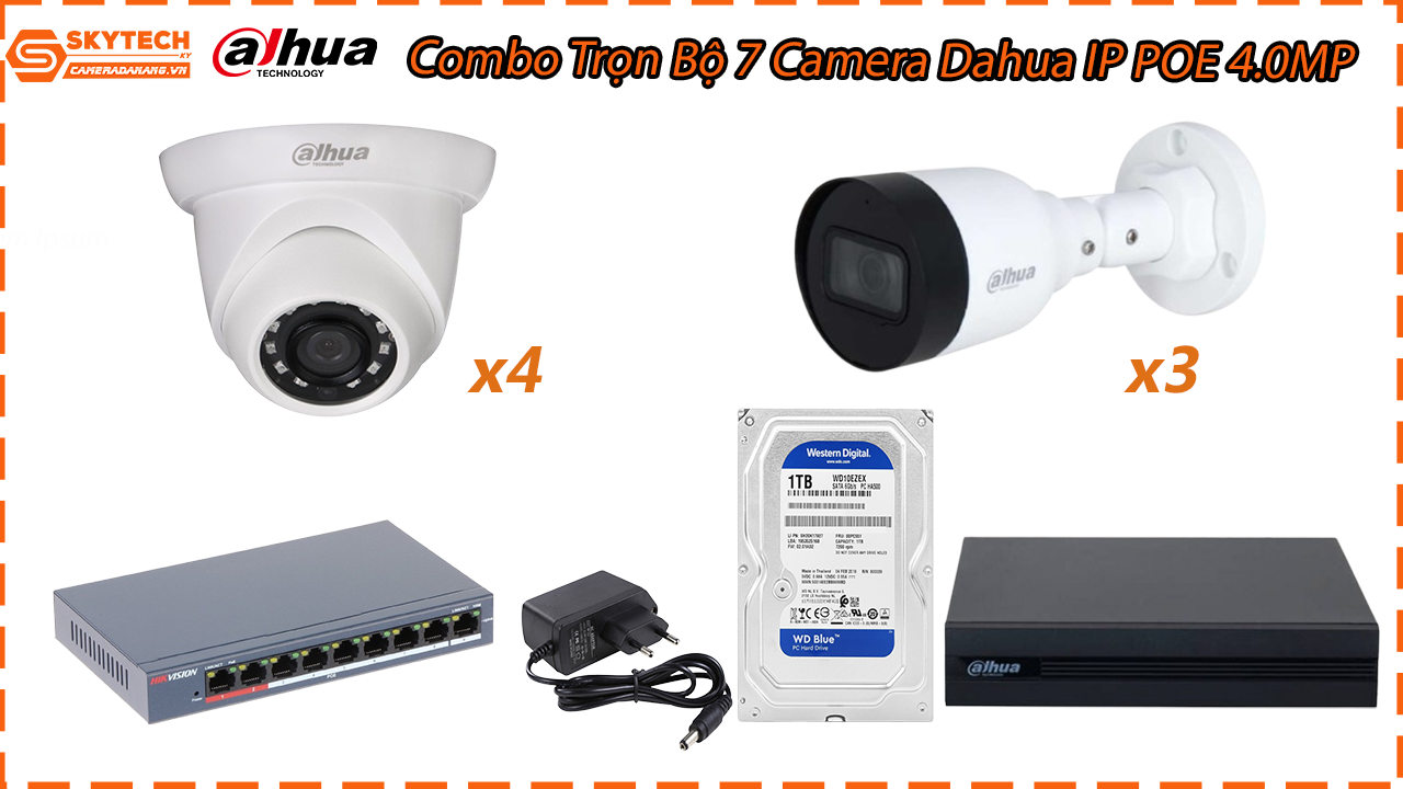 Combo Trọn Bộ 7 Camera Dahua IP POE 4.0MP