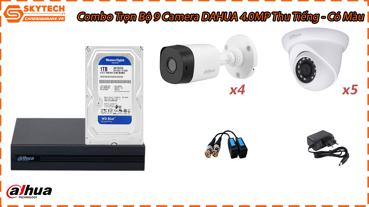 Combo Trọn Bộ 9 Camera Dahua 4.0MP – Thu Tiếng – Có Màu gồm những gì?