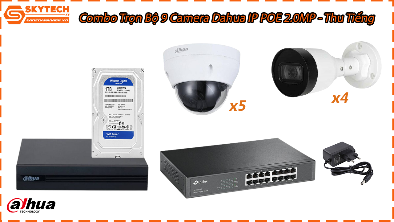 Combo Trọn Bộ 9 Camera Dahua IP POE 2.0MP – Thu Tiếng gồm những gì?